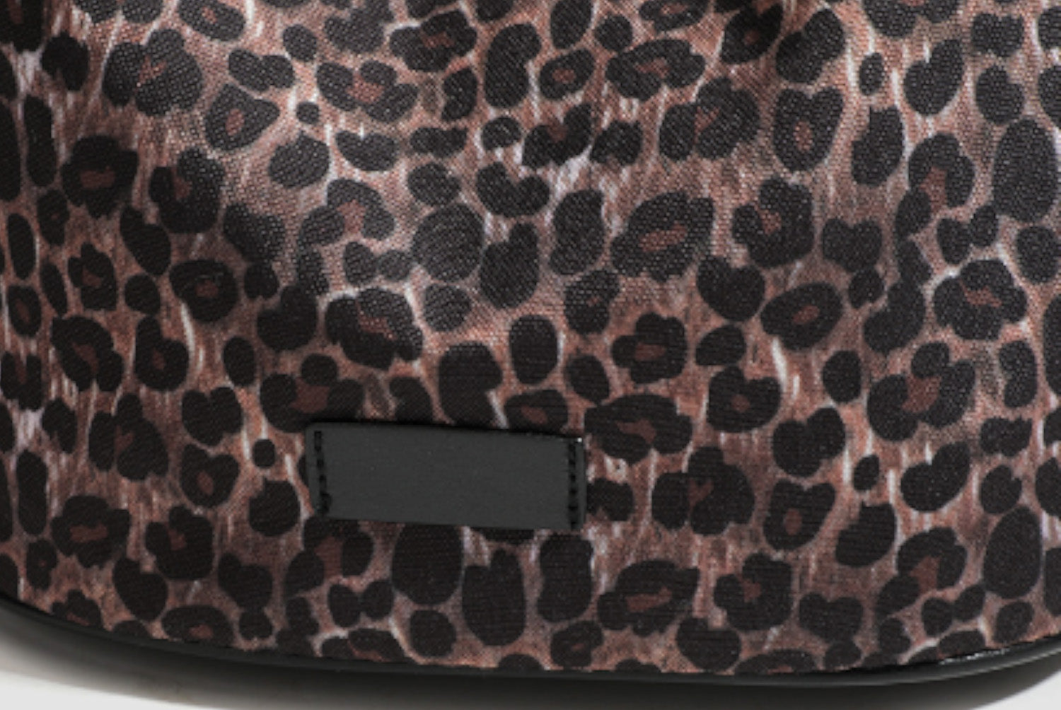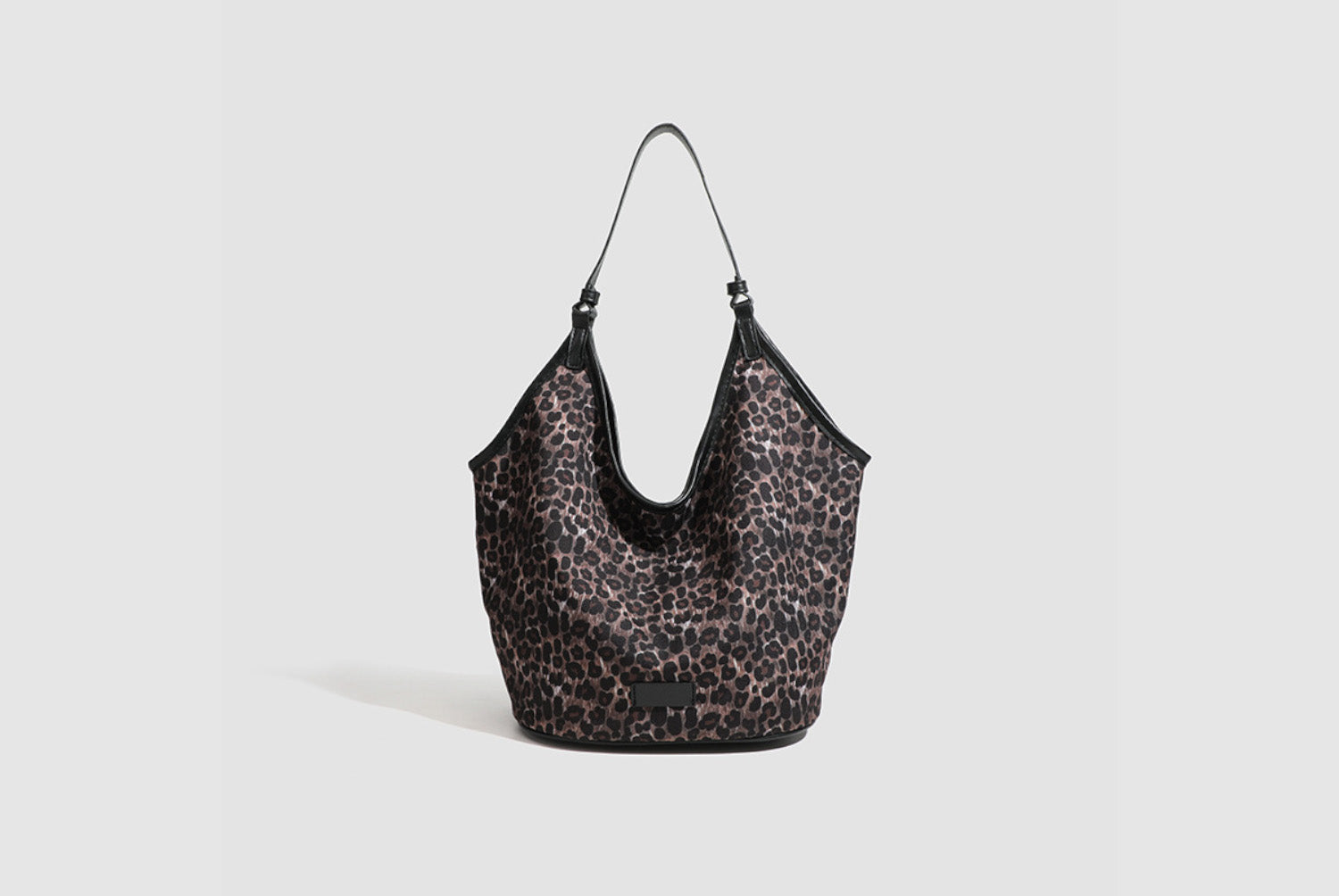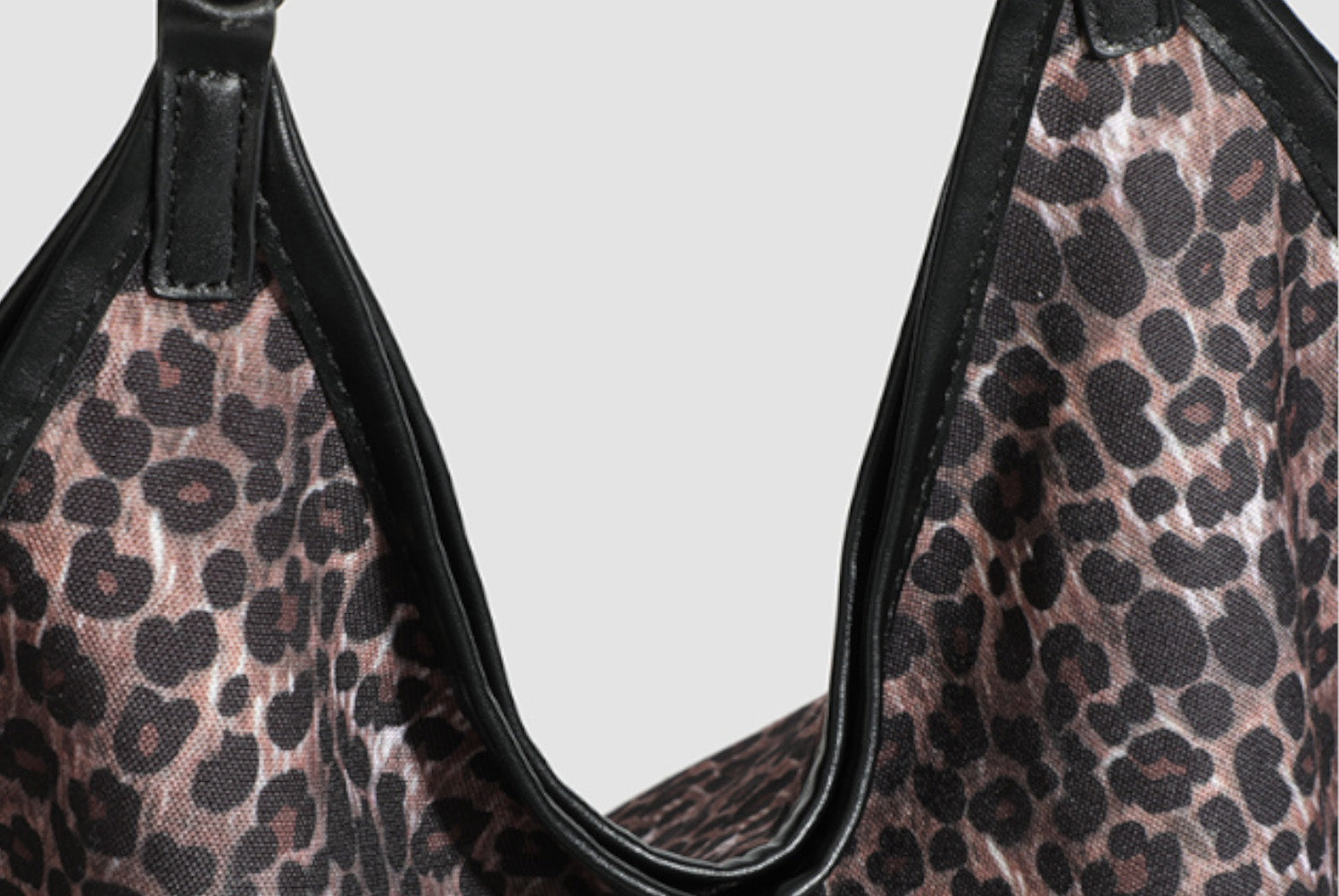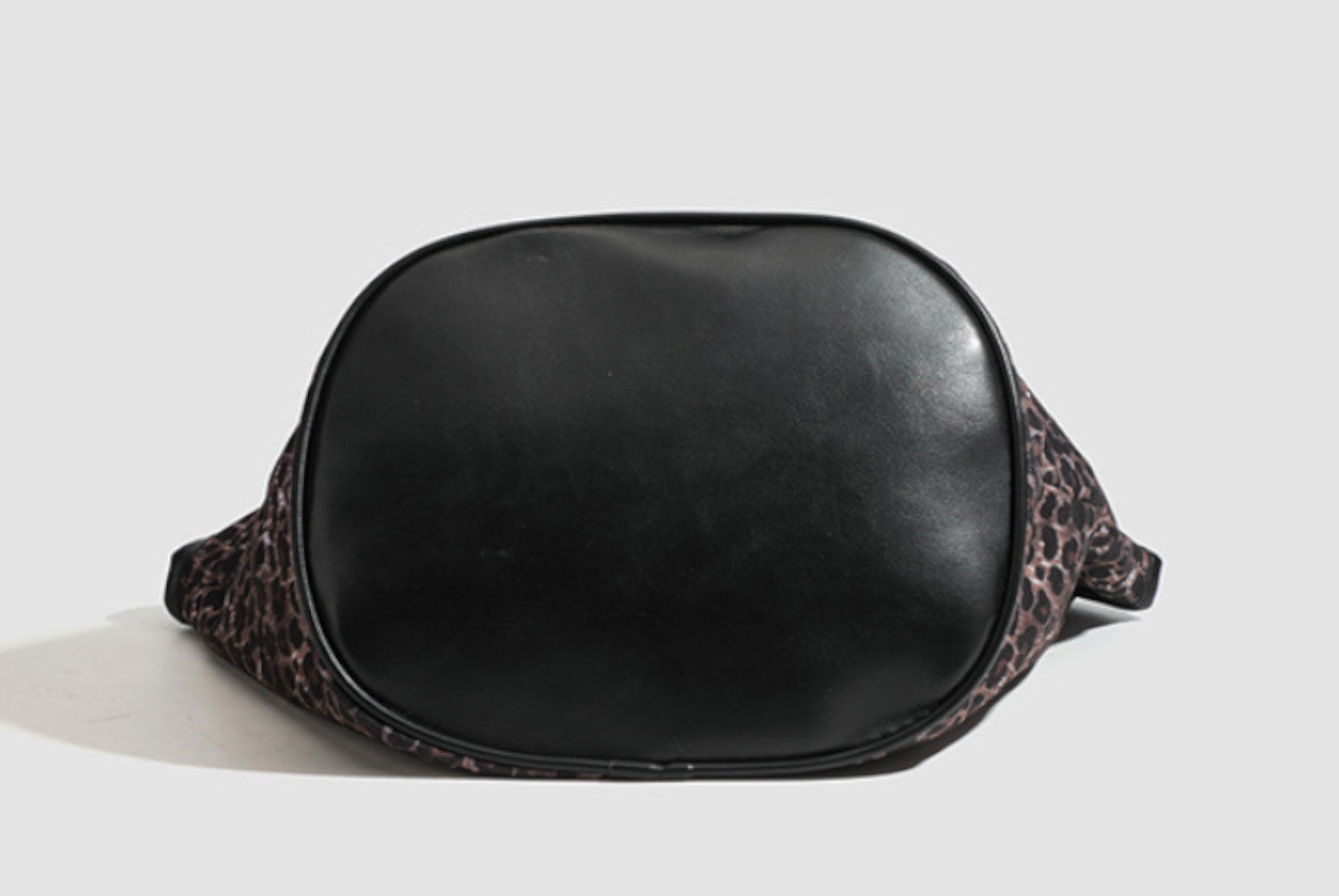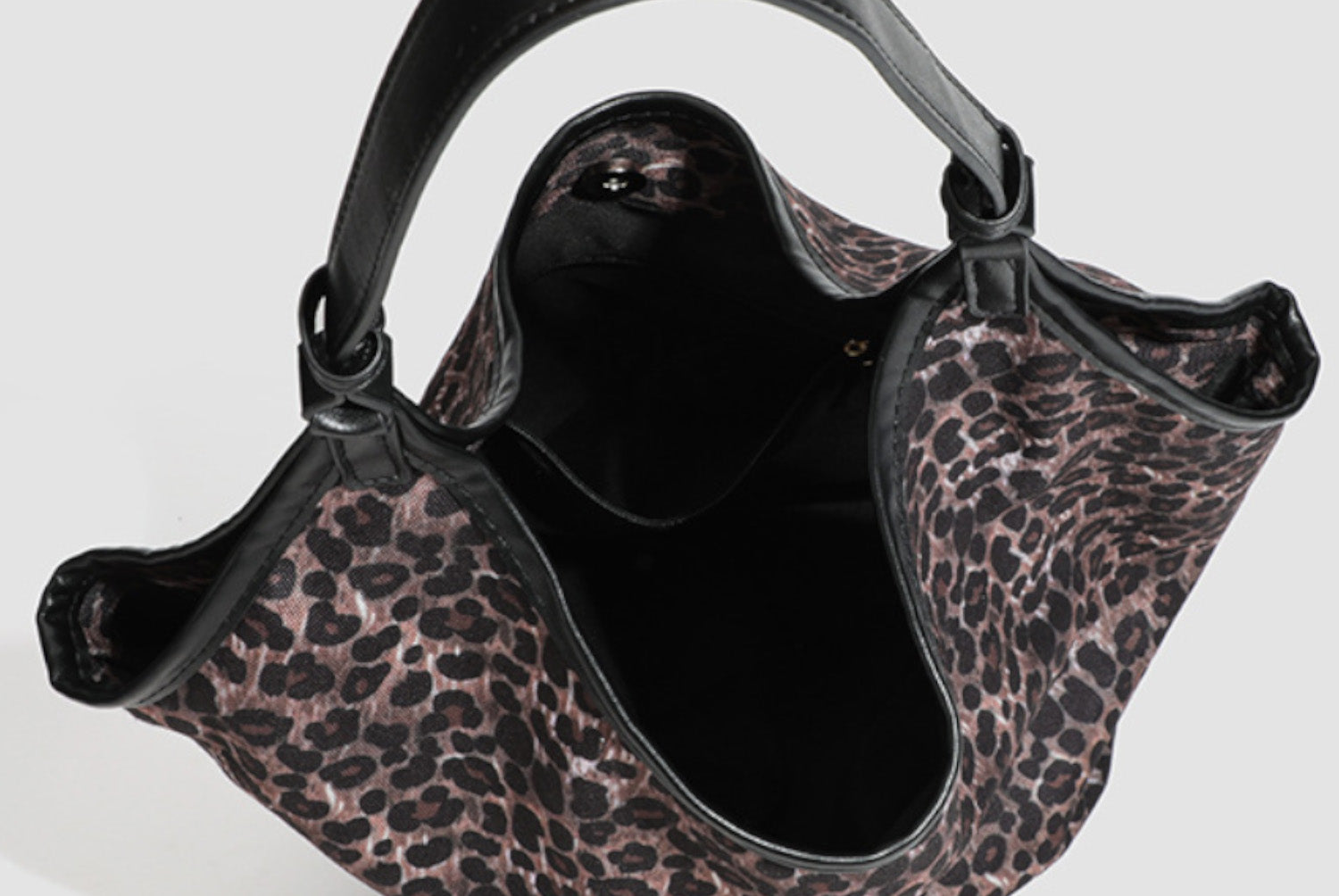 1. Style: Black bag featuring classic leopard print elements against a solid black background, understated yet stylish.