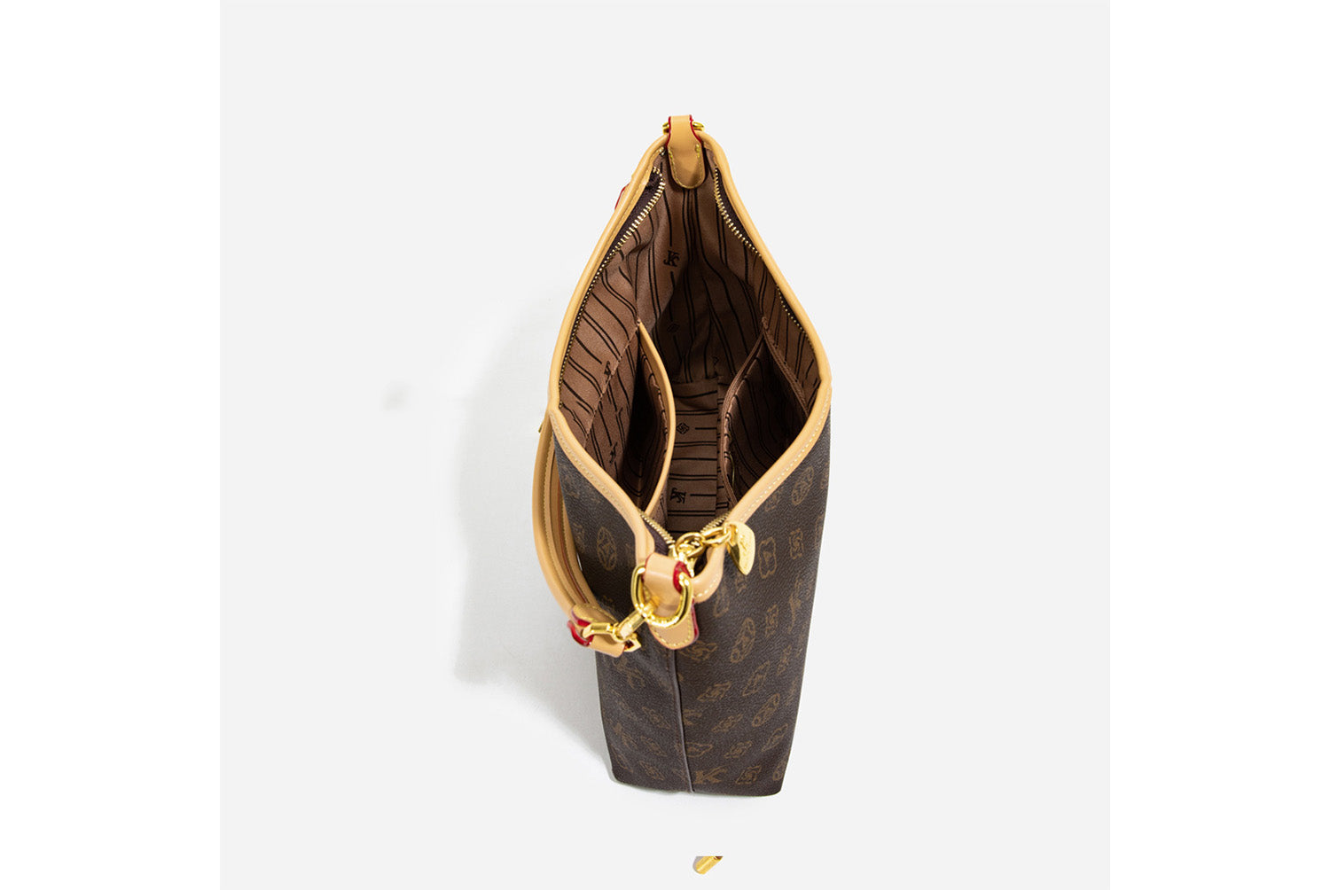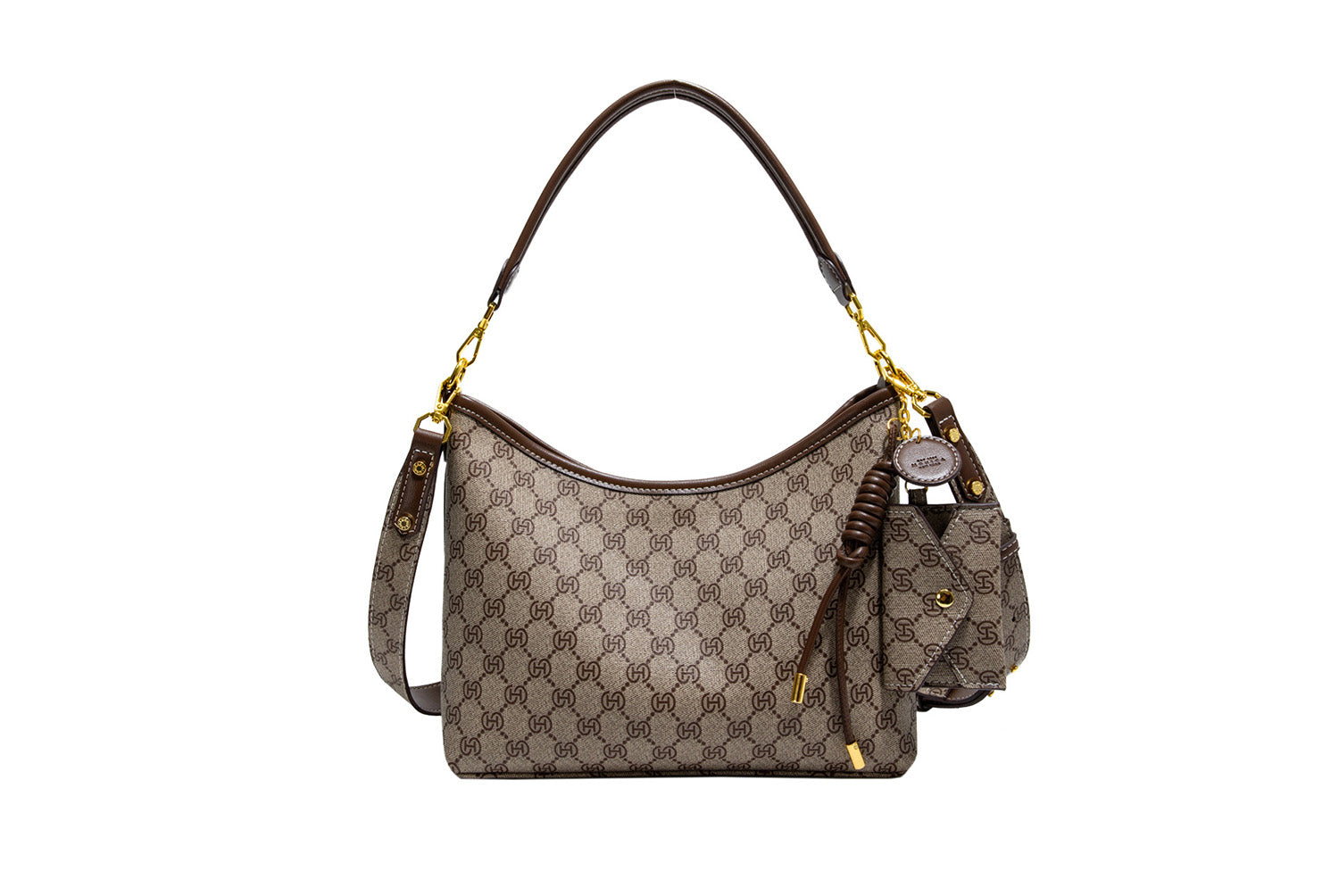- Classic monogram pattern paired with a color-block design, stylish and versatile.