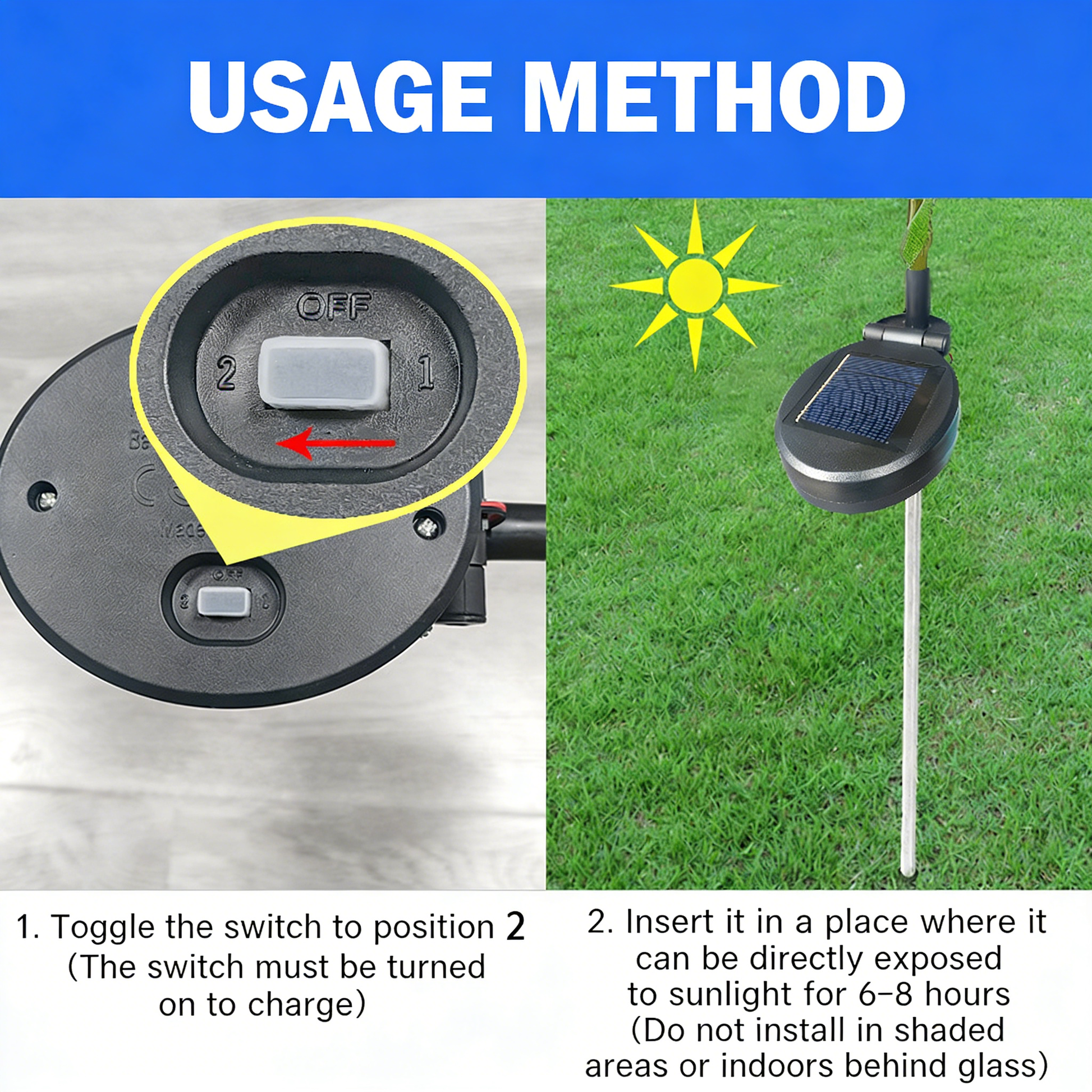 1. Securely insert the ground insert into the soil, ensuring the solar panel is fully exposed to sunlight.