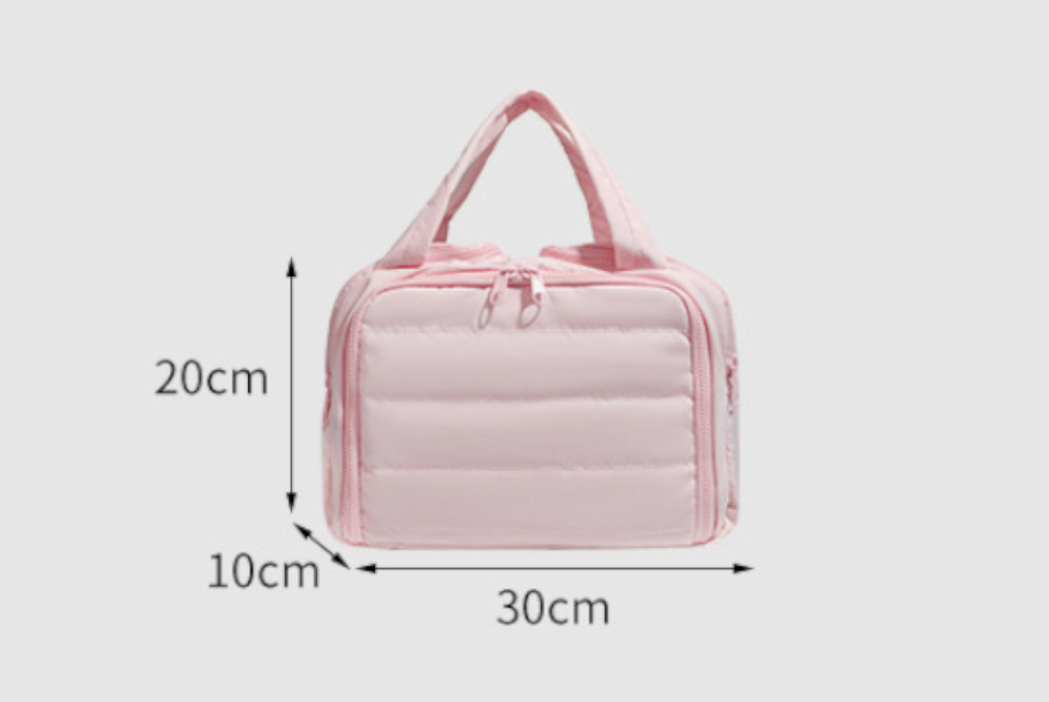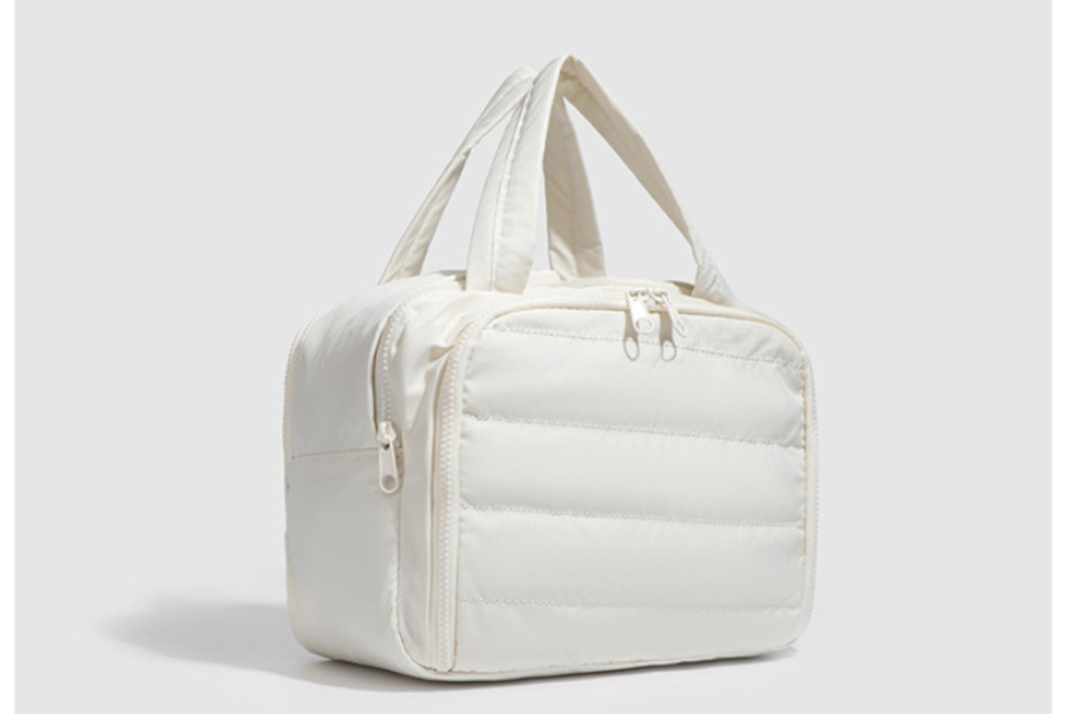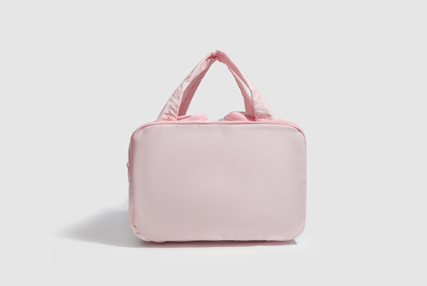 4. Detailed Design: The main compartment features a two-way zipper closure and multiple built-in net pockets and hooks for convenient storage of toiletries, cosmetics, and more.
